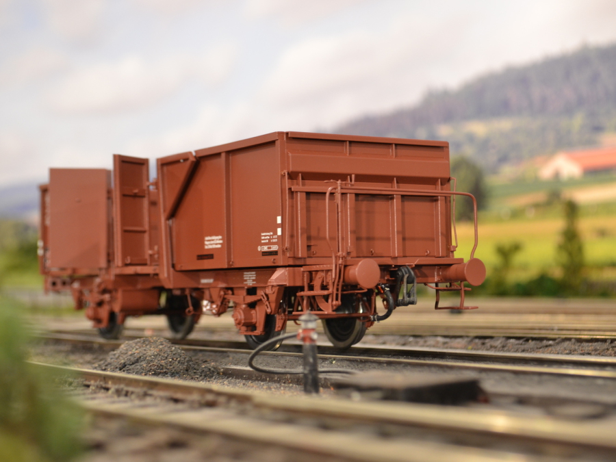 [...] Nach dem Zweiten Weltkrieg war die Eisenbahn noch das vorherrschende Transportmittel, Schüttgüter hatten daran einen großen Anteil, denn ca 75% aller in den offenen Güterwagen beförderten Wagenladungen waren Schüttgütter. Allerdings konnten die Sendungen nur mit Waggonkippanlagen, Kränen oder per Hand entladen werden. Auch bei den meisten Selbstentladewagen waren teuere Entladevorrichtungen (Tiefbunker u.Ä.) notwendig. Da gerade Kleinempfänger keine Möglichkeit besaßen, die Wagen preisgünstig zu entladen, wanderten diese zunehmend zum Straßenverkehr ab. Daher wurden in den 50er Jahren neue Selbstentladewagen entworfen. Neben Flurkippern und Hubkippern wurden auch Mittenselbstentladewagen konstruiert. Im Gegensatz zu weiteren entwickelten Selbstentladewagen gehörten die Mittenselbstentladewagen zu den offenen Güterwagen, da diese einen ebenen Wagenboden besaßen. Bei den Mittenselbstentladewagen wurden beide Wagenhälften hydraulisch angehoben, damit ruschte das Ladegut in die Wagenmitte, von wo aus es über ein Förderband eintladen werden konnte. (Wikipedia)